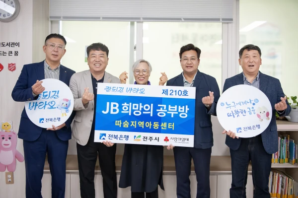 전북은행은 전주시 따숨지역아동센터에서 ‘JB희망의 공부방 제210호’ 오픈식을 실시했다고 22일 밝혔다.